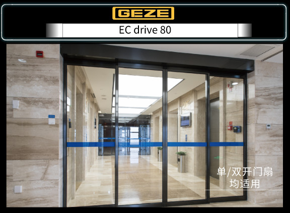 蓋澤ECdrive80平移門系統,可用于單道門或雙開門,門扇材料可挑選鋼化夾膠玻璃、中空玻璃窗、木質及其有外框玻璃移門,建筑門面整體解決方案——(咨詢深圳地區代理商-深圳市乙元興自動門有限公司